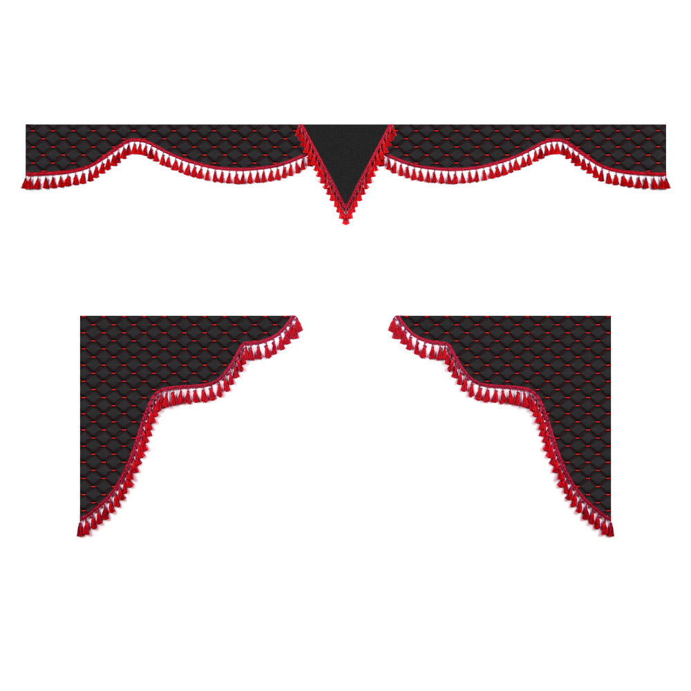 Ламбрекен комплект тройной с вышивкой IVECO 2,2м (бахрома 1кат) ("Классик" черный стр. красная)