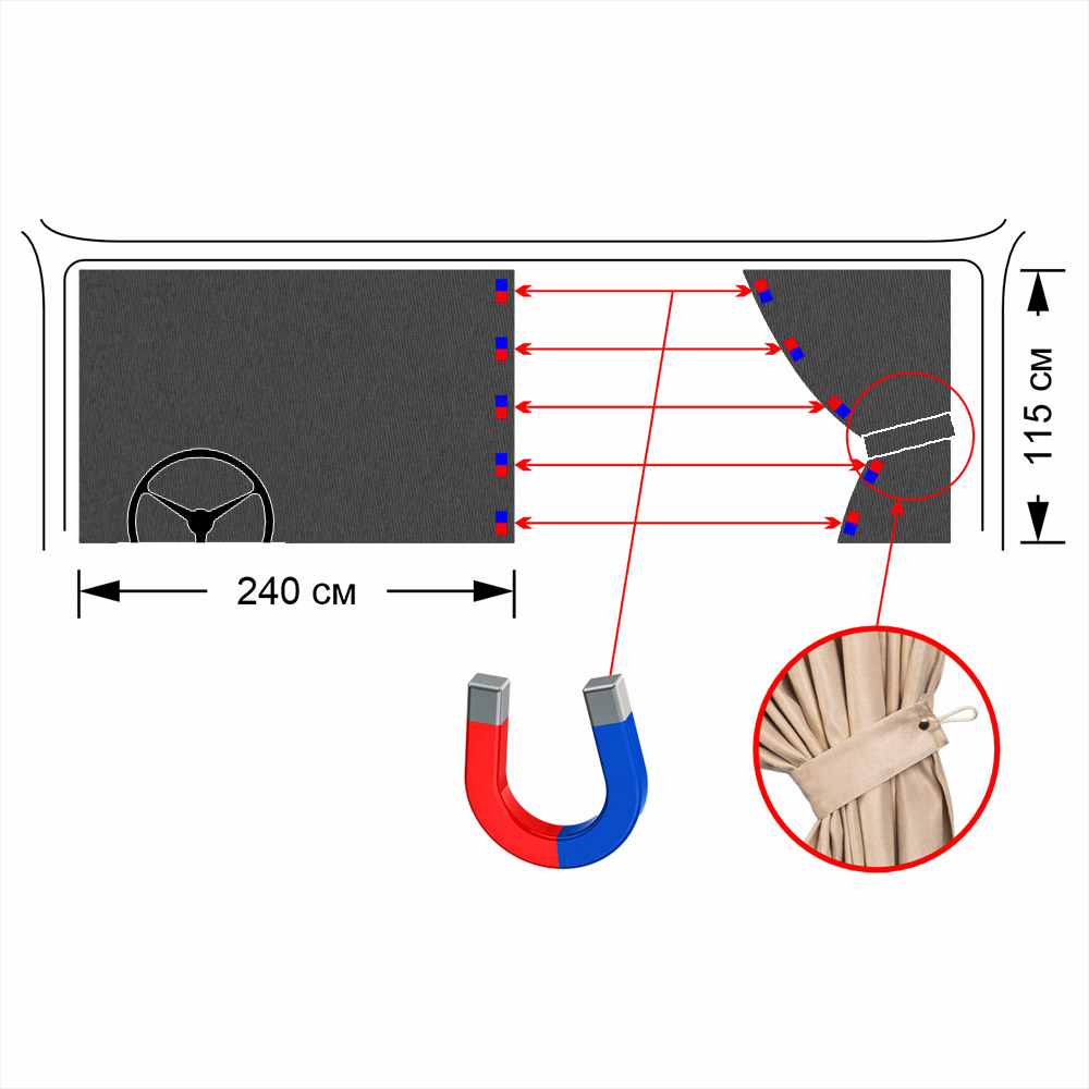 Шторы лобового окна 2,4х115 (магнитные защелки)