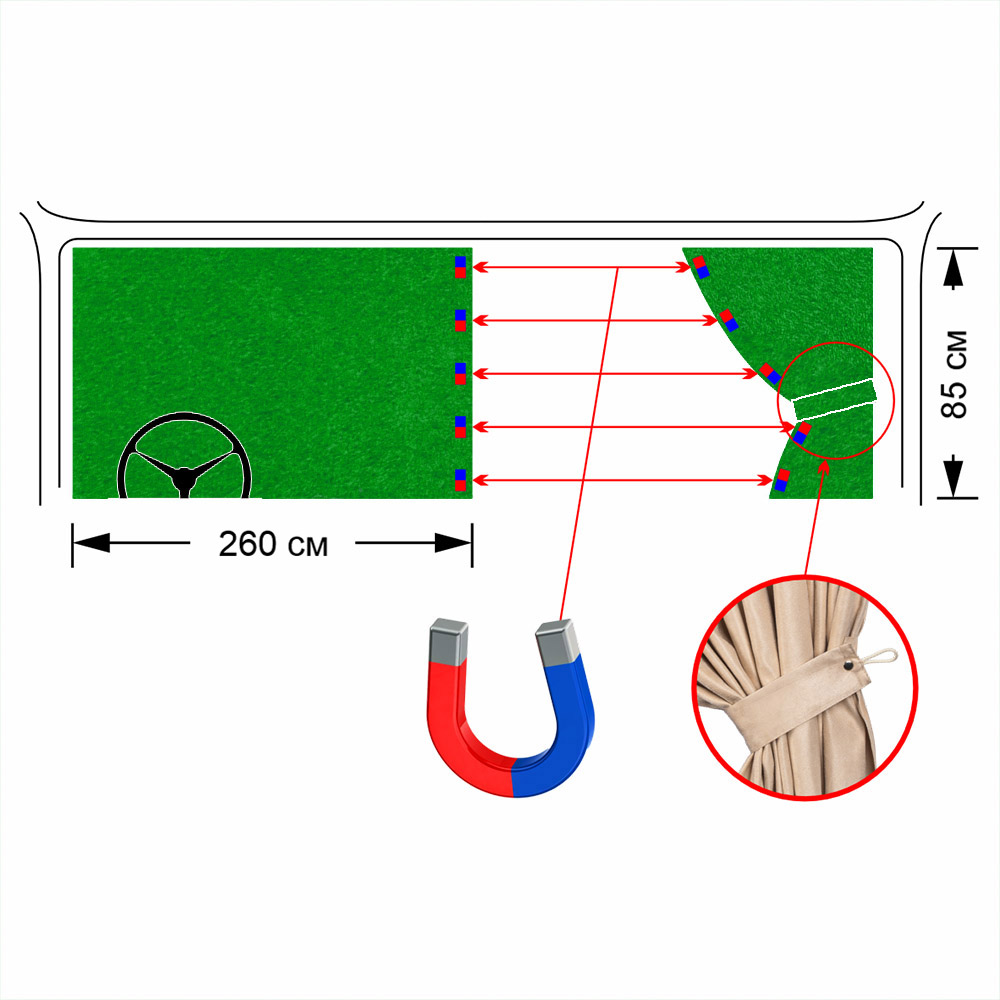 Шторы лобового окна 2,6х85 (магнитные защелки)