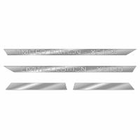 Накладки из нержавейки №24 на двери DAF 105 от 2012г.в. - в комплекте 4 детали, цена указана за комплект. Крепятся на двери грузовика с помощью двухстороннего скотча 3M (уже наклеен на деталь). Накладки изготовлены из нержавейки AISI-304 "суперзеркало" толщиной 0,8 мм.