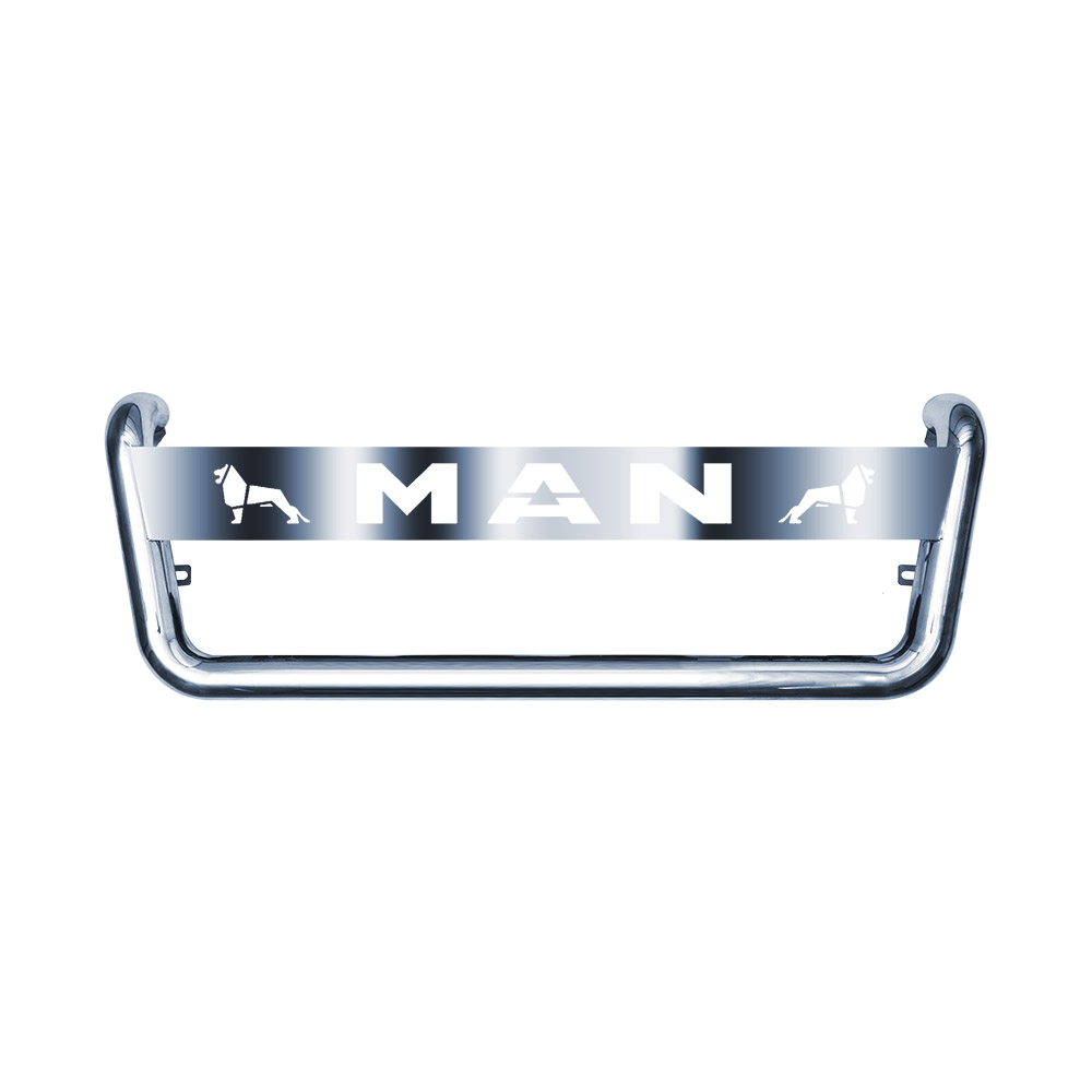 Кенгурятник с надписью для MAN TGA/TGX/TGS M002 - один из самых распространенных и практичных видов внешнего обвеса, придает тягачу брутальный вид, выделяет его среди стандартных заводских комплектаций. Кенгурятники для грузовиков MAN TGA/TGX/TGS от компании VITA TRUCK изготовлены из толстостенной нержавеющей трубы (Ø60,3мм) и листовой нержавеющей стали AISI304 (толщина - 1мм). На кенгурятниках M002 по умолчанию предусмотрено 4 установочных кронштейна для фар, по желанию клиента количество кронштейнов можно изменить в меньшую (!) сторону, пишите об этом в комментариях к заказу. Изделия поставляются в комплекте с крепежом.